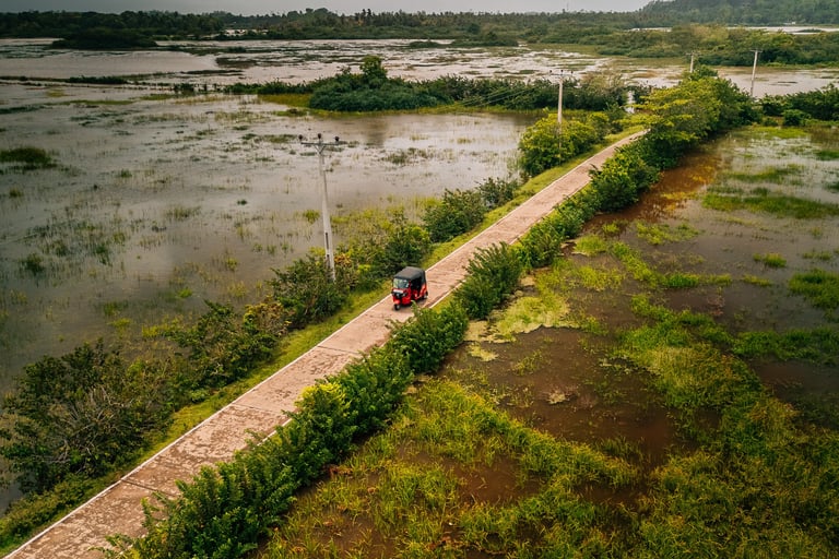 In Sri Lanka rijden ze links, wat vrij snel went, al moet je goed opletten bij kruispunten en rotondes. Naast links verkeer gaat het hele verkeer hier een beetje op gevoel. Als je iemand inhaalt, toeter je standaard even — als in: “kijk uit, hier kom ik!” 🚗📢