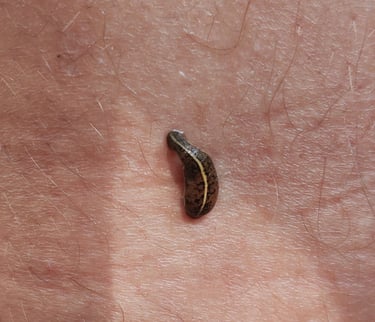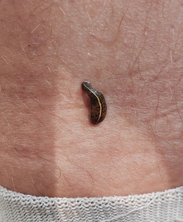 Je kunt een bloedzuiger verwijderen door je nagel onder zijn zuignap te schuiven en hem zo los te wippen. Bij mij kwam er een lokale vrouw langs die hem er gewoon aftrok — dat werkt dus ook 😉
