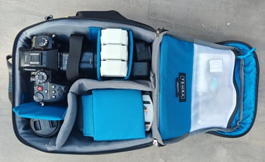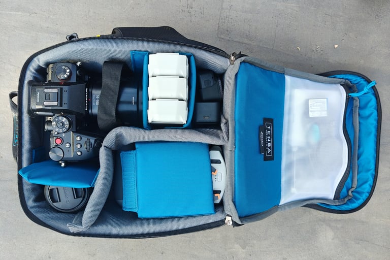 De cameracube van Tenba. Eigenlijk passen alle camera en drone spullen erin, super handig!